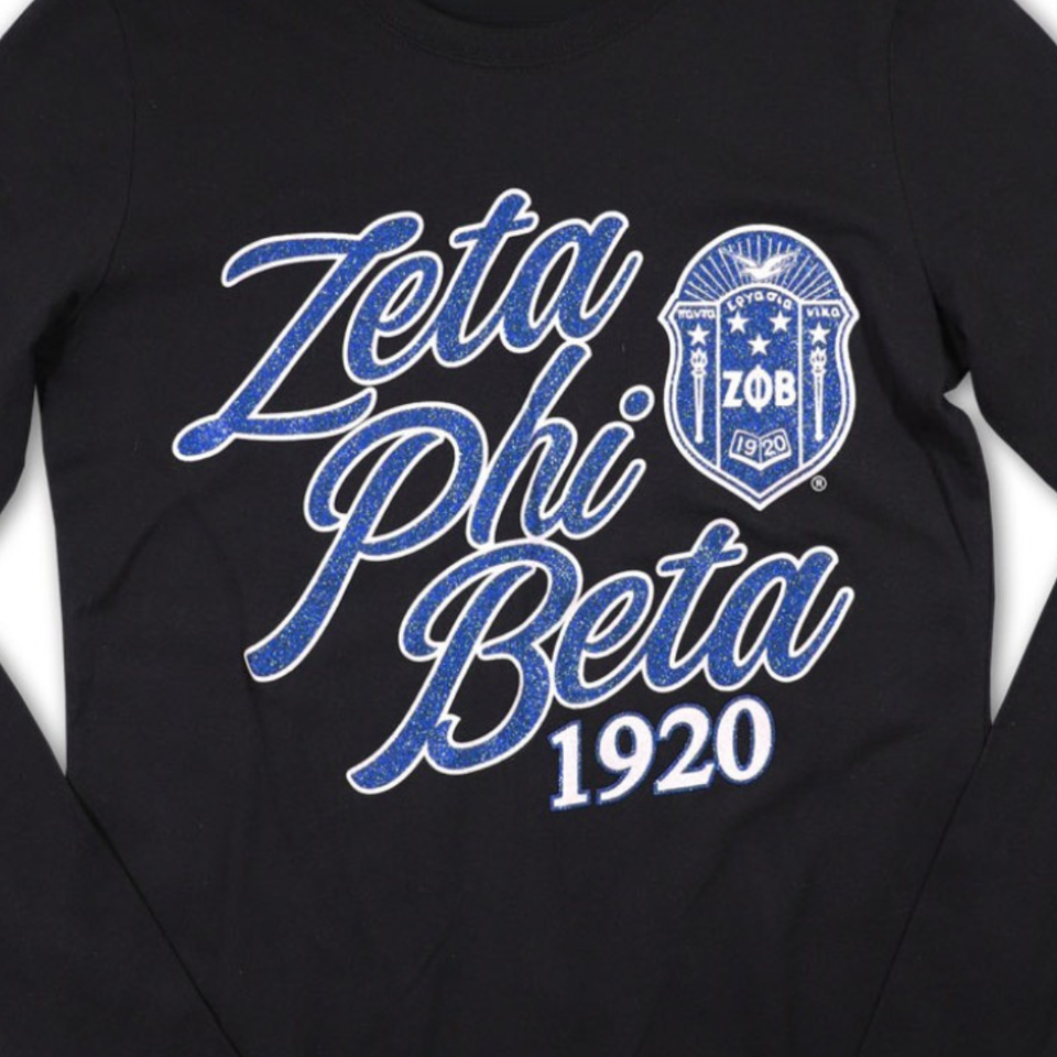 Zeta Phi Beta 1920 Script Logo Long Sleeve Tee Black Cotton Embroidery Greek Life Apparel Custom Sorority Clothing