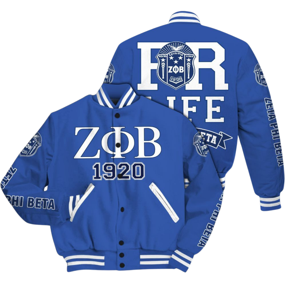 Zeta Phi Beta 1920 Sorority Founders Style Blue White Varsity Letterman Jacket ZPB Greek Life Chenille Patch Gear
