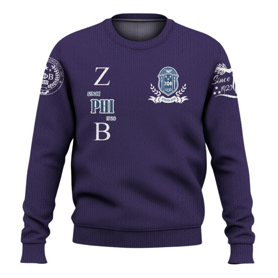 Zeta Phi Beta 1920 Sorority Knit Sweater Blue White ZPhiB Greek Life Chenille Patch Divine Nine Letter Sweater Wear