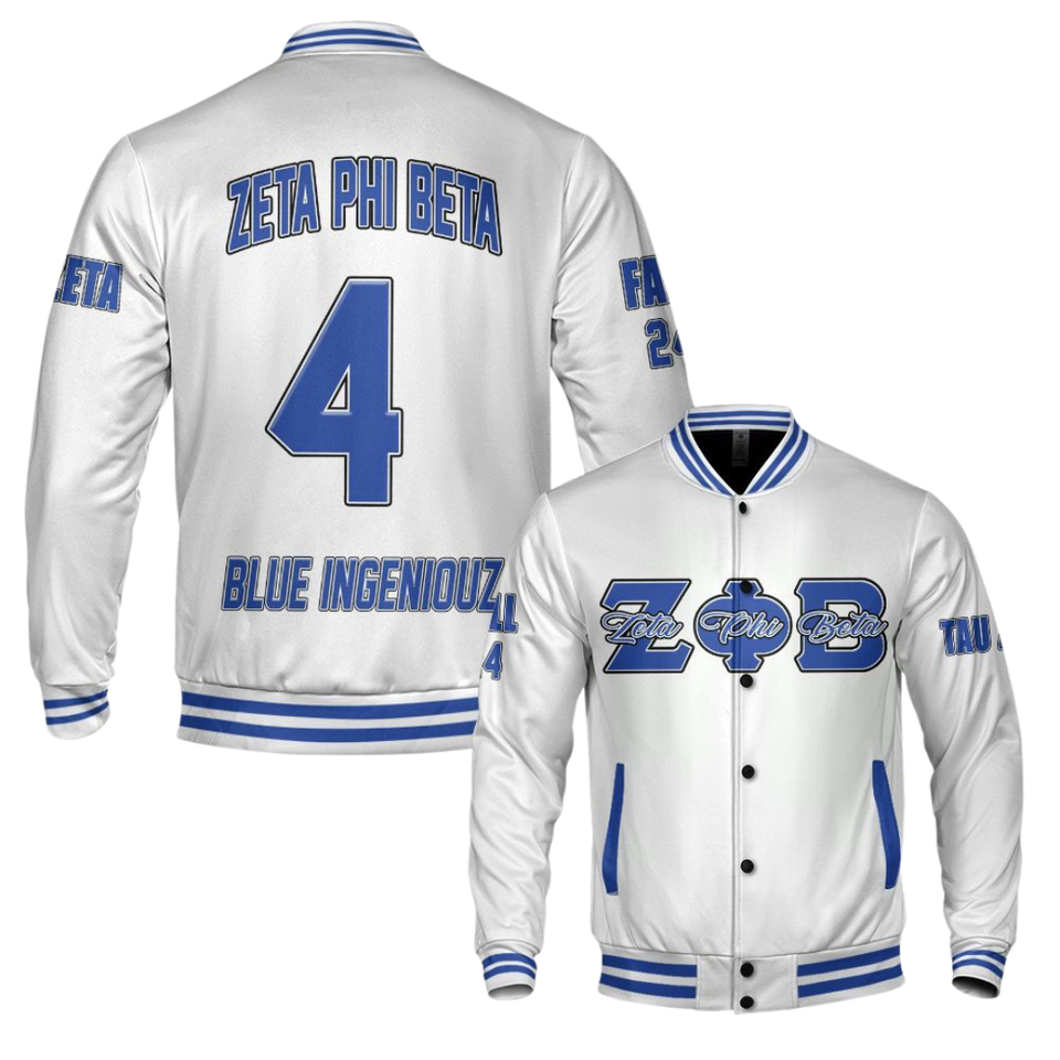 Zeta Phi Beta 1920 Sorority Varsity Jacket Blue White Letterman ZPB Greek Life Chenille Patch Founders Style Coat