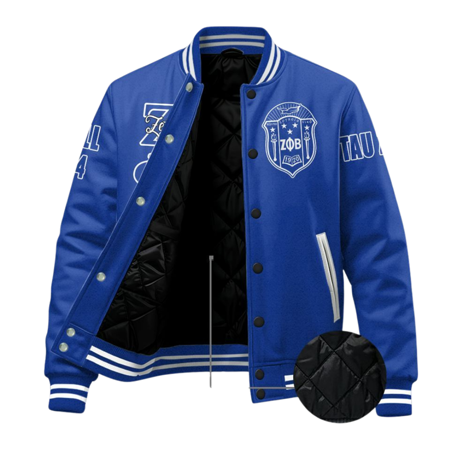 Zeta Phi Beta 1920 ZPB Blue White Letterman Jacket Sorority Varsity Greek Life Chenille Patch Founders Style Gear