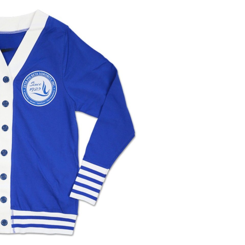Zeta Phi Beta Black Cardigan with Blue Trim and Embroidered Logo Since 1920 Sorority Greek Apparel Custom Sweater Jacket