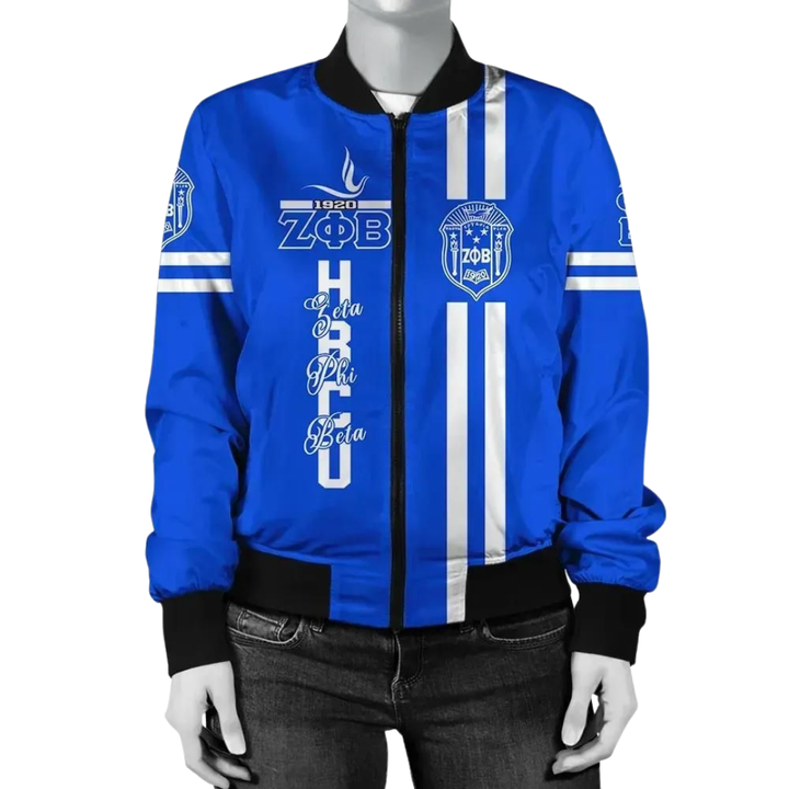 Zeta Phi Beta Blue White 1920 Satin Jacket Womens Sorority ZPB Shield Embroidery Greek Apparel Premium Varsity Look