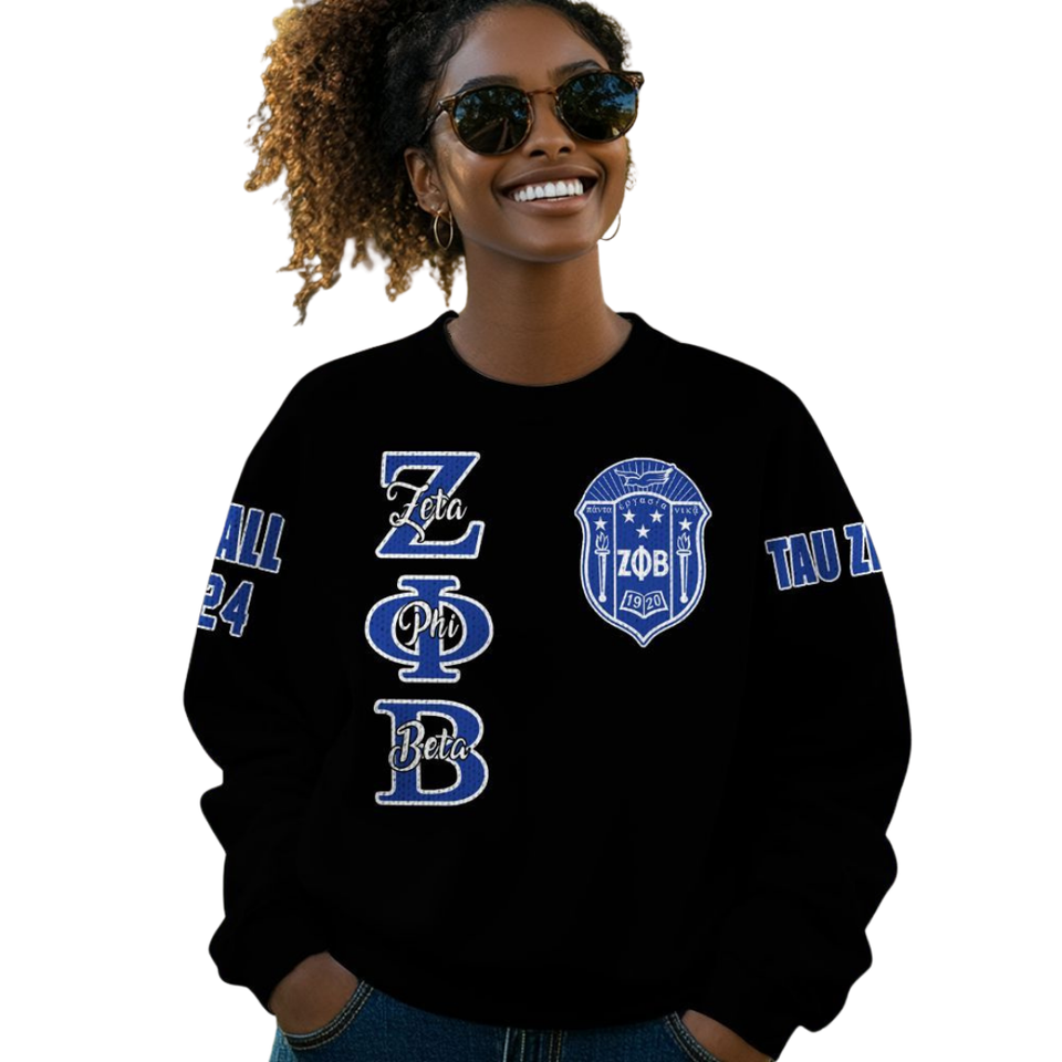 Zeta Phi Beta Greek Life Sweater 1920 ZPhiB Sorority Knit Blue White Chenille Patch Divine Nine Premium Letter Wear