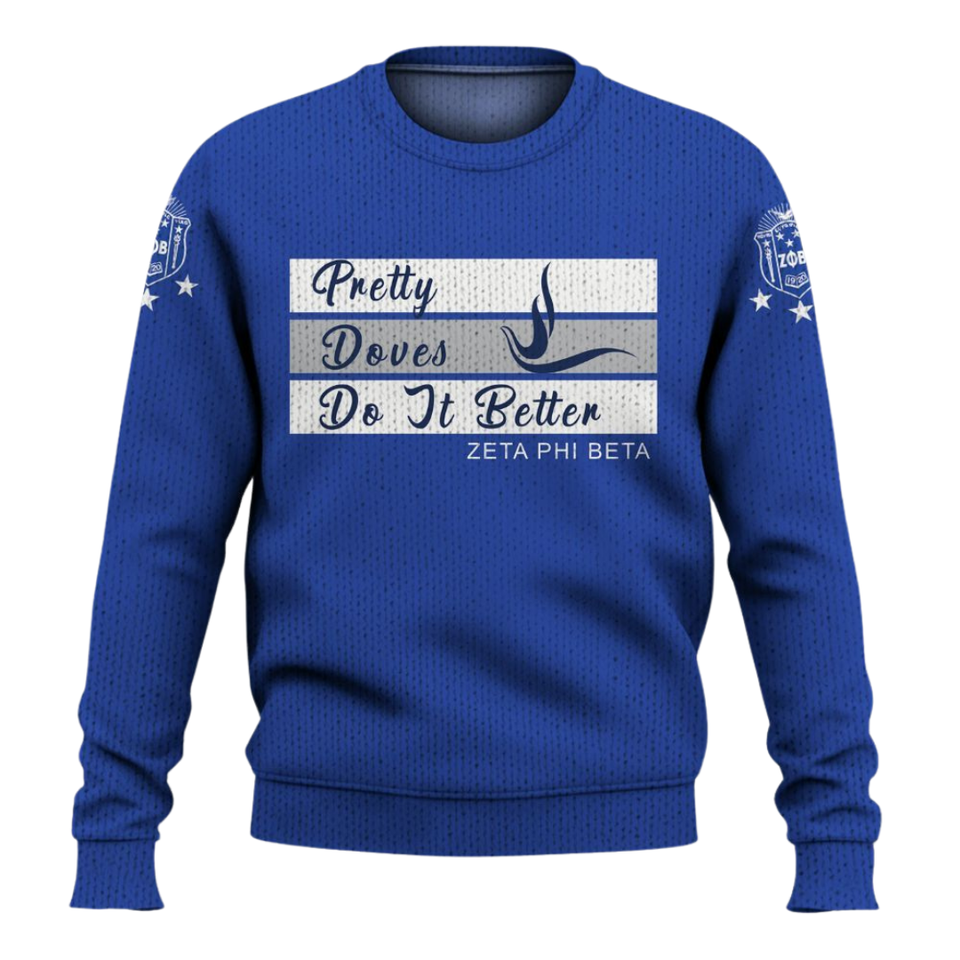 Zeta Phi Beta Knit Sorority Sweater 1920 ZPhiB Greek Life Blue White Chenille Letters Divine Nine Premium Sweater