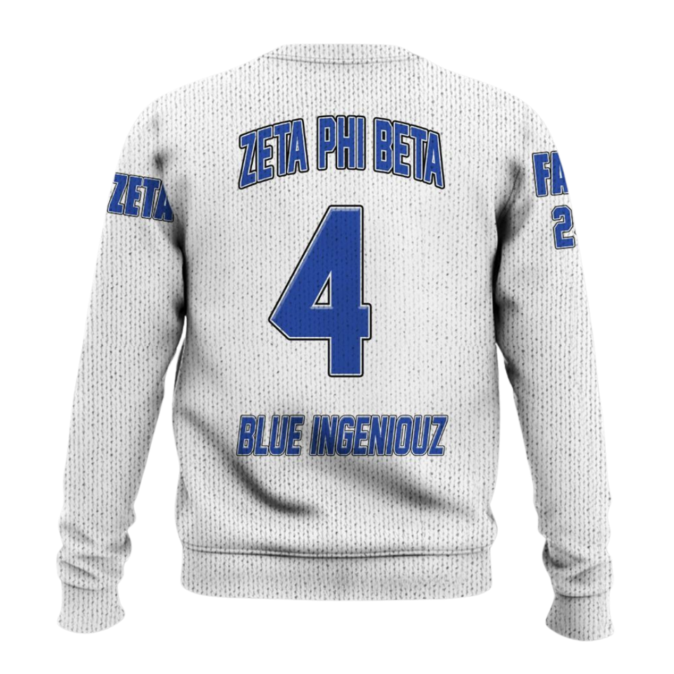 Zeta Phi Beta Knit Sweater 1920 ZPhiB Greek Life Sorority Apparel Chenille Embroidery Blue White Premium Sisterhood Top