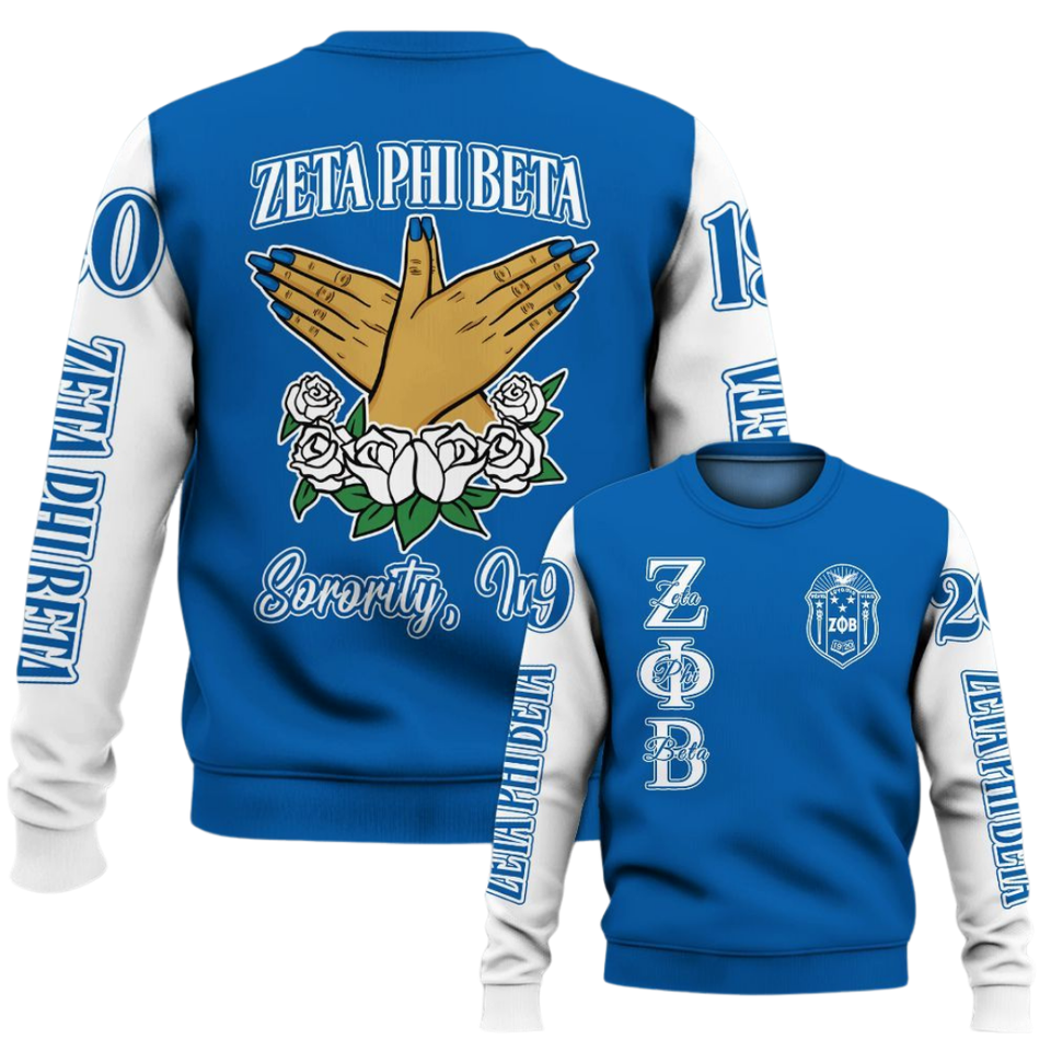 Zeta Phi Beta Sorority Blue Fleece Crewneck Sweatshirt Women Greek 1920 Embroidered Apparel
