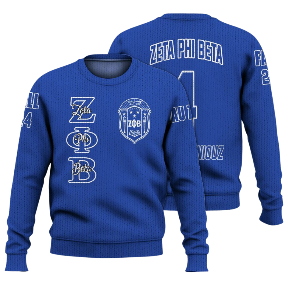 Zeta Phi Beta Sorority Chenille Sweater 1920 ZPhiB Knit Blue White Greek Life Divine Nine Premium Letter Sweater