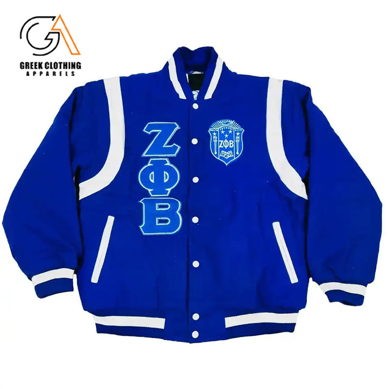 Zeta Phi Beta Sorority Finer Woman Royal Crop Wool Varsity Jacket