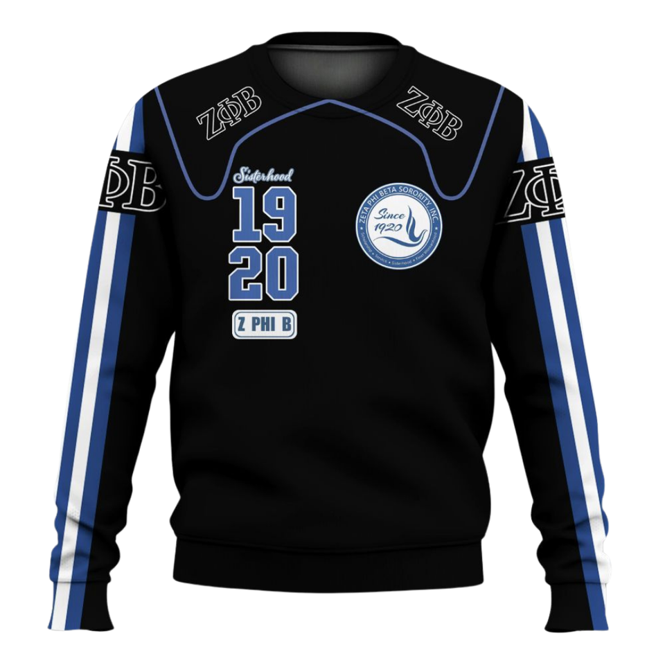 Zeta Phi Beta Sorority Greek 1920 Blue Crewneck Sweatshirt Women Embroidered Fleece Pullover