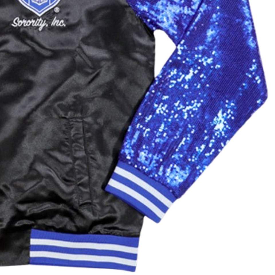 Zeta Phi Beta Sorority Sequin Jacket Black Blue 1920 Greek Life Apparel Custom Embroidery ZPB Glitter Varsity Bomber Party Wear
