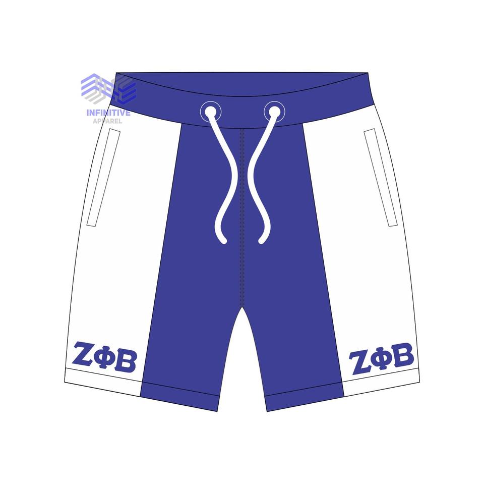 Zeta Phi Beta Sorority White & Blue Unisex 100% Cotton Woven Mid Solid Casual OEM Service Canvas Shorts