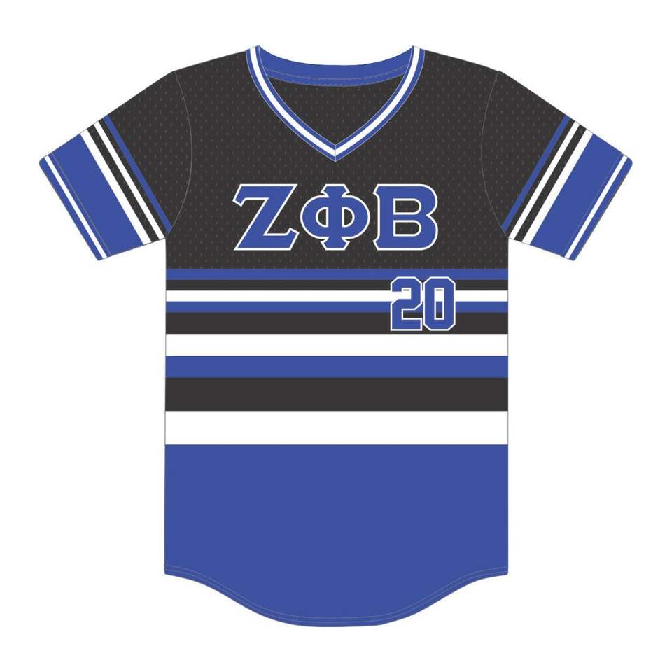 Zeta Phi Beta Striped Black Pullover Baseball Jersey 100% Polyester Mesh Sorority Apparel V Neck T Shirt Embroidered Applique