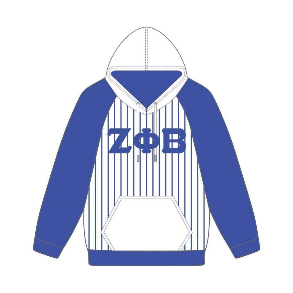 Zeta Phi Beta White Body Blue Raglan Pinstripes Pullover Hoodie Greek Sorority Apparel Custom Divine Nine HBCU Clothing