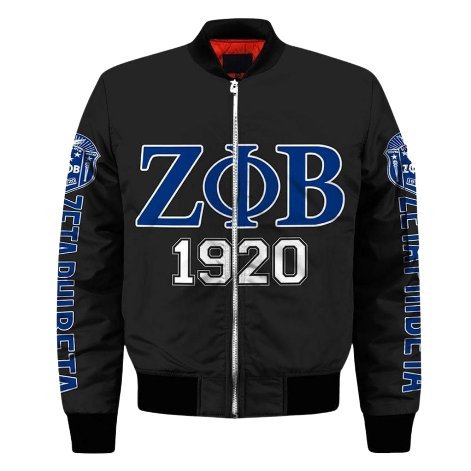 Zeta Phi Beta Womens Greek Wool Coated Jacket Blue White 1920 Sorority ZPB Shield Front Premium Varsity Outerwear