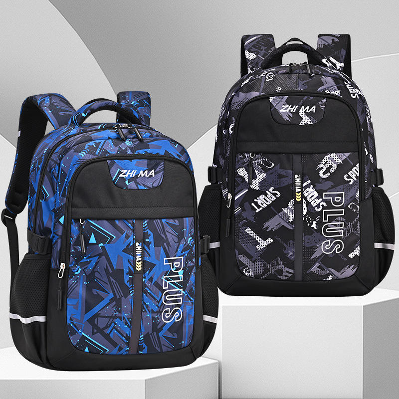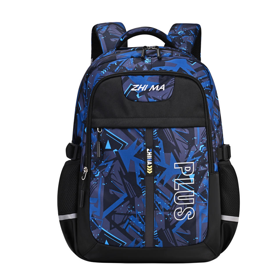 Zhi Ma Plus Backpack 15 Inches Blue Pattern School Bag For Boys Girls Unisex Student Backpack With Zipper Pocket