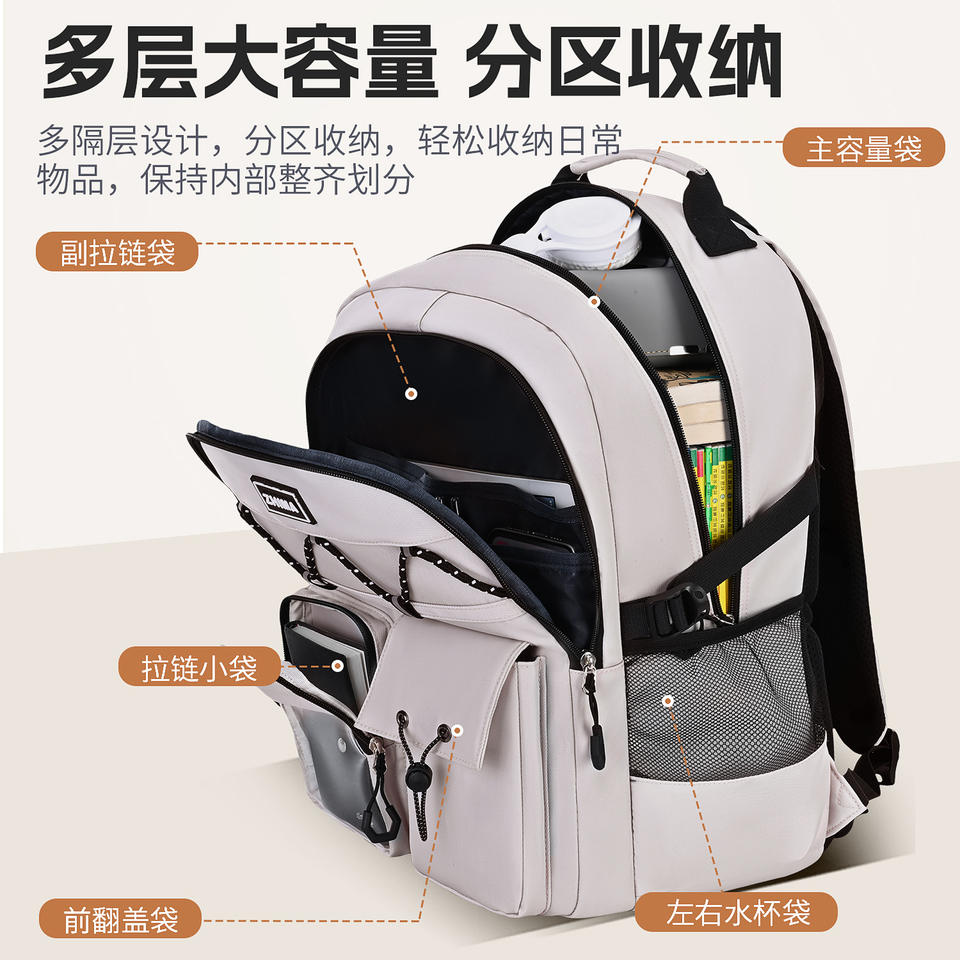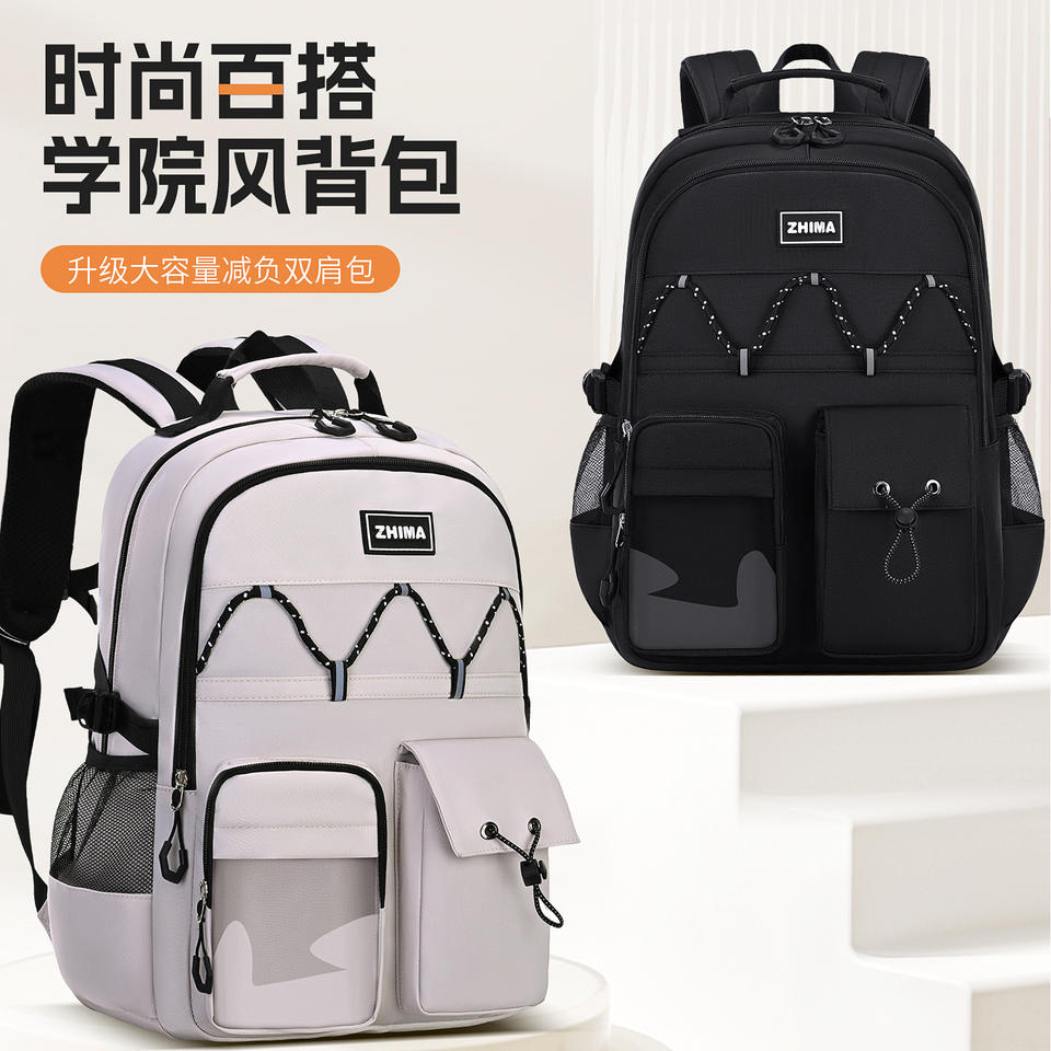 Zhima Student Backpack 18 In Large Capacity Lightweight School Bag For Middle School Unisex Solid Color