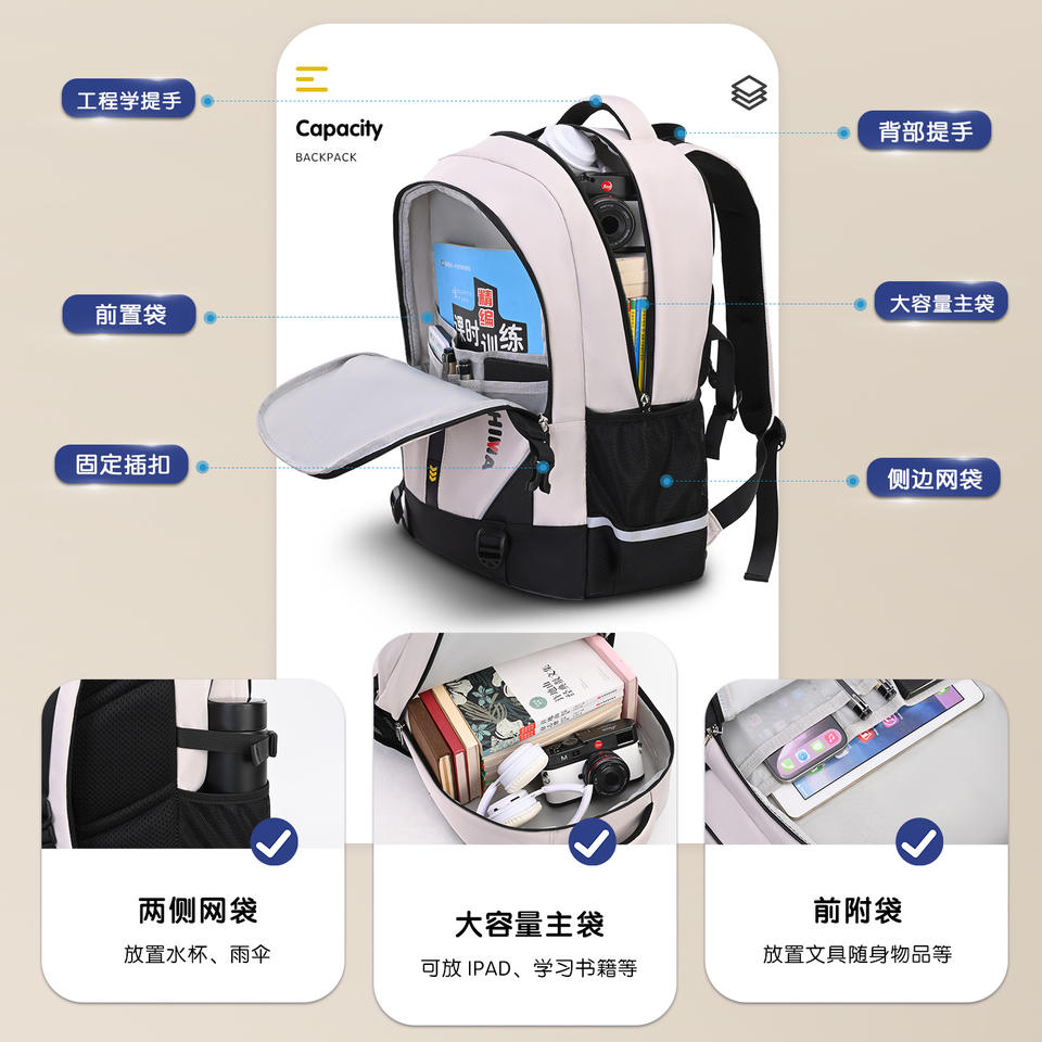 Zhiya Student Backpack 15 Inches Large Capacity School Bag For High School Students Lightweight With Zipper Pocket