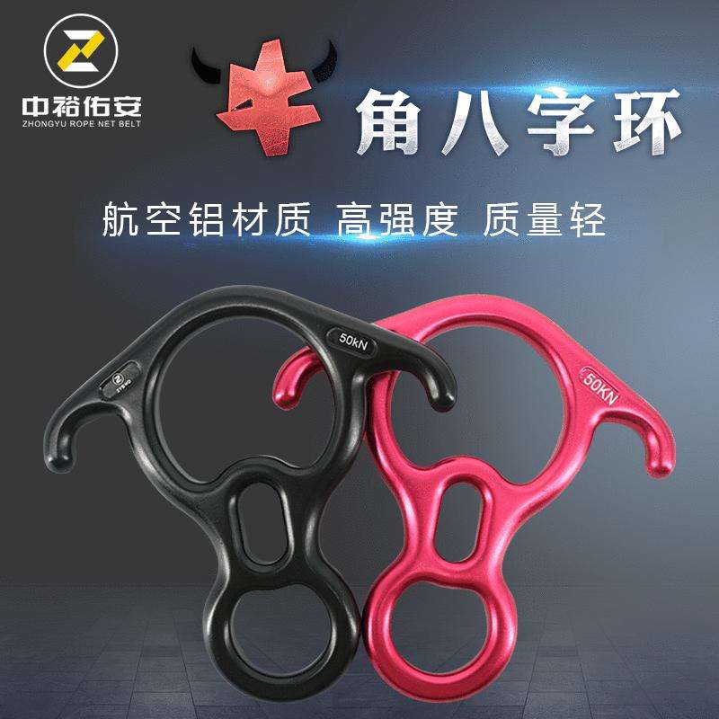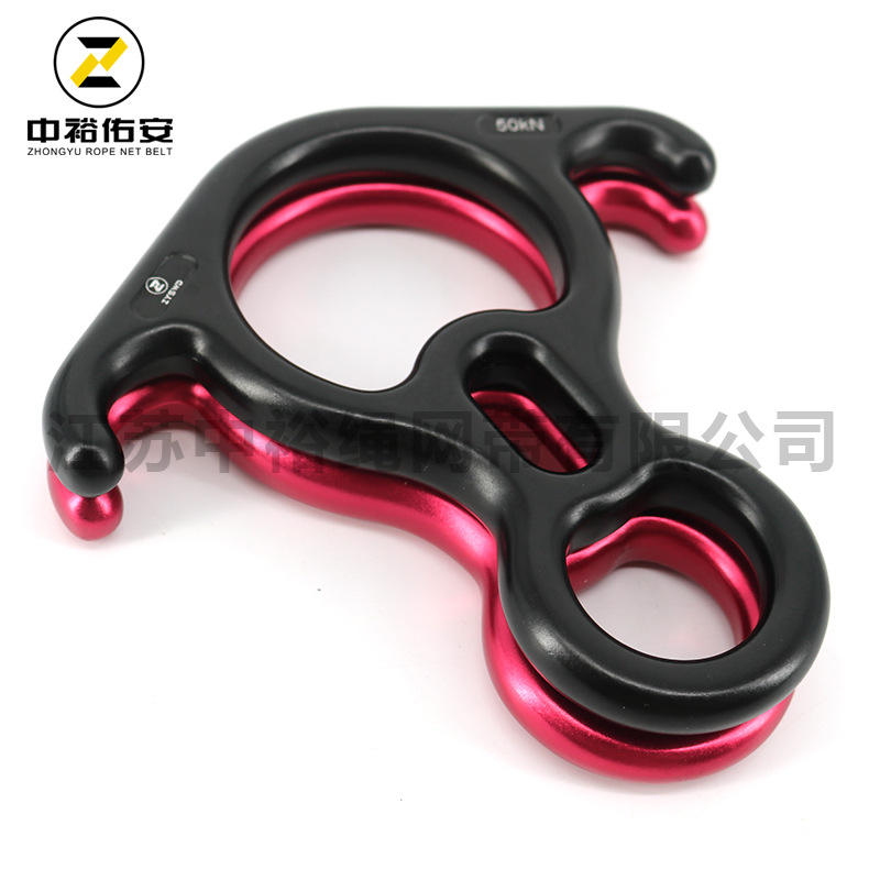 Zhongyu Rope Net Belt Figure Eight Descender 50Kn Black Red Aluminum Abseiling High Altitude Work Yoga Climbing Equipment