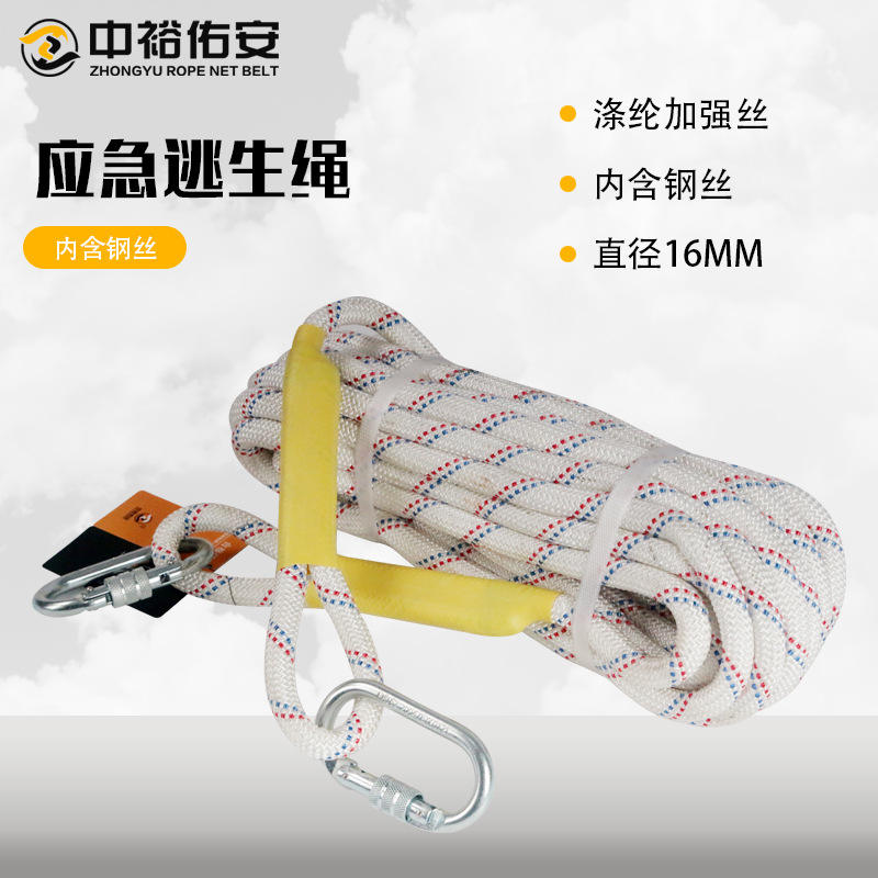 Zhongyu Rope Net Belt Safety Rope 16mm Polyester Steel Wire Core Rescue Rope For High Rise Fire Escape