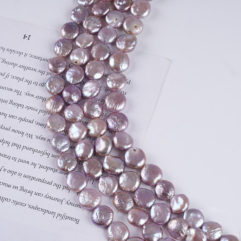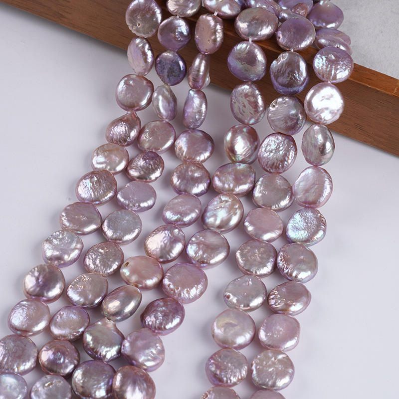 Zhuji 13-15mm Button Freshwater Baroque Pearls White Potatoes Loose Coin Pearls Natural Purple Color