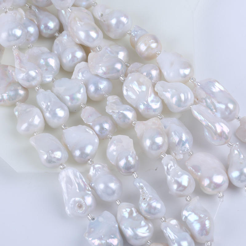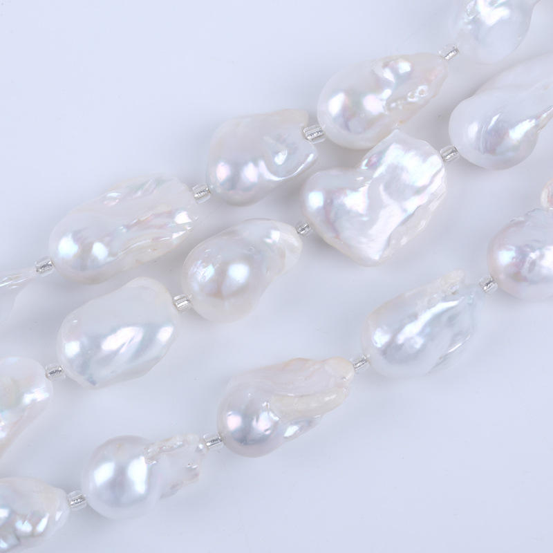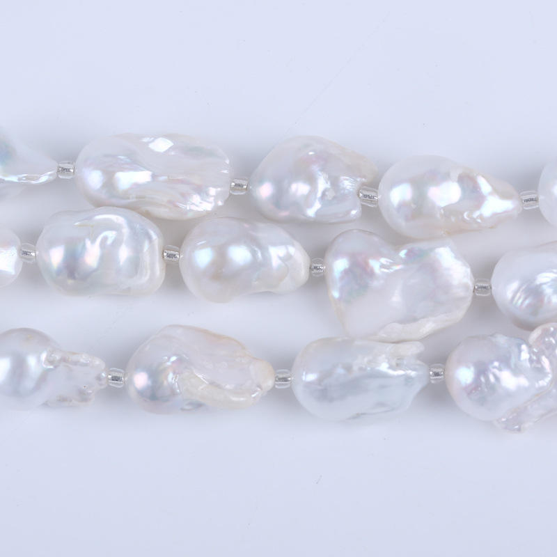 Zhuji 18cm 13-15mm White Mars Bead Baroque Bracelet Natural Freshwater Pearl DIY String Button Shell Pearl Loose Pearls Material