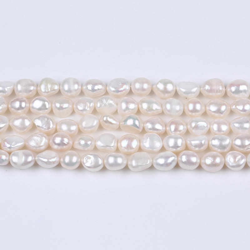 Zhuji 9-10mm Baroque Straight Hole White Freshwater Pearl DIY Jewelry Two-Sided Light Loose Pearls Natural Accessories