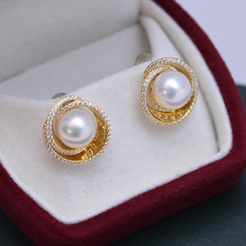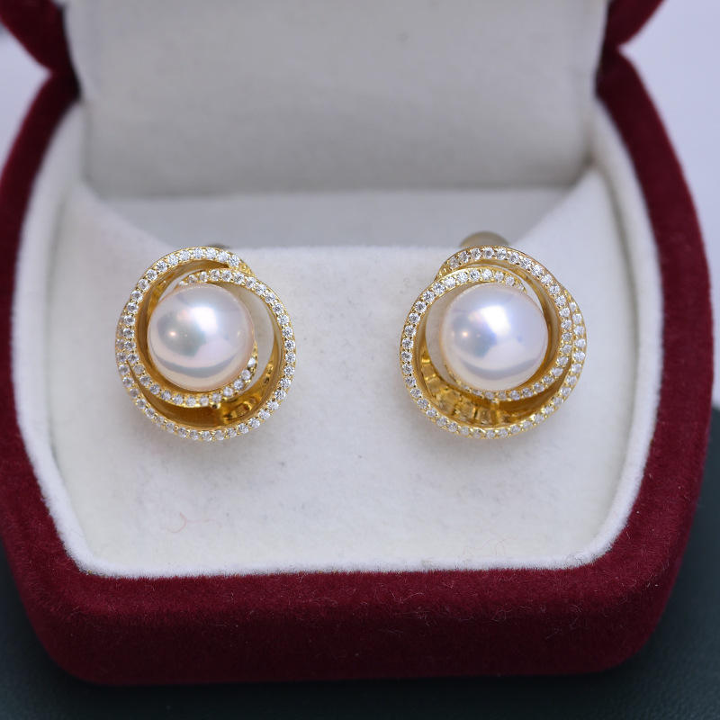 Zhuji Danshui S925 Silver Multi-Purpose Earrings 9-10mm White Round Strong Light Fine Flaws Wholesale Pearl Earrings