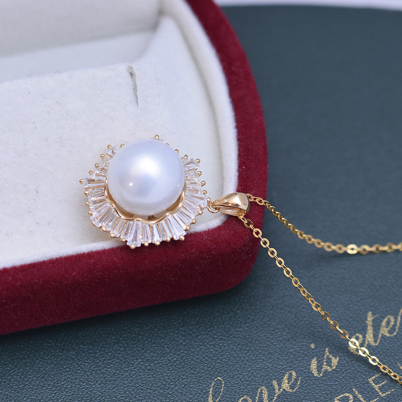 Zhuji Edison 12-13mm White Freshwater Round Pearl Pendant Necklace Strong Light Fine Flaws S925 Silver Jewelry