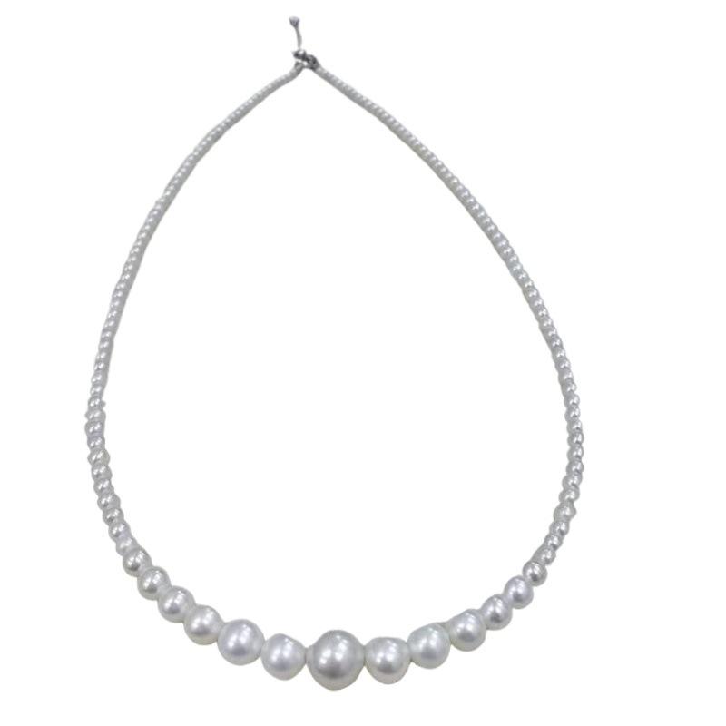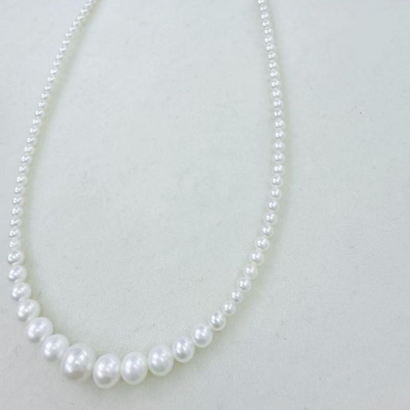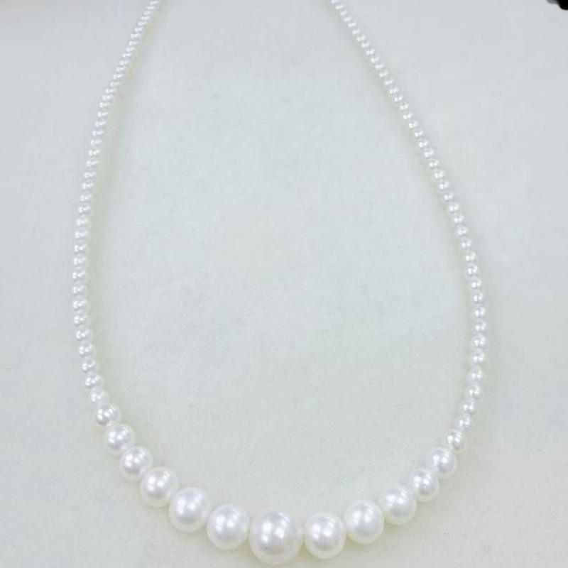 Zhuji Freshwater Pearl Necklace 2-7mm Round Almost Flawless Aurora Pure Silver with Adjustable Buckle Smile Pearl Necklace