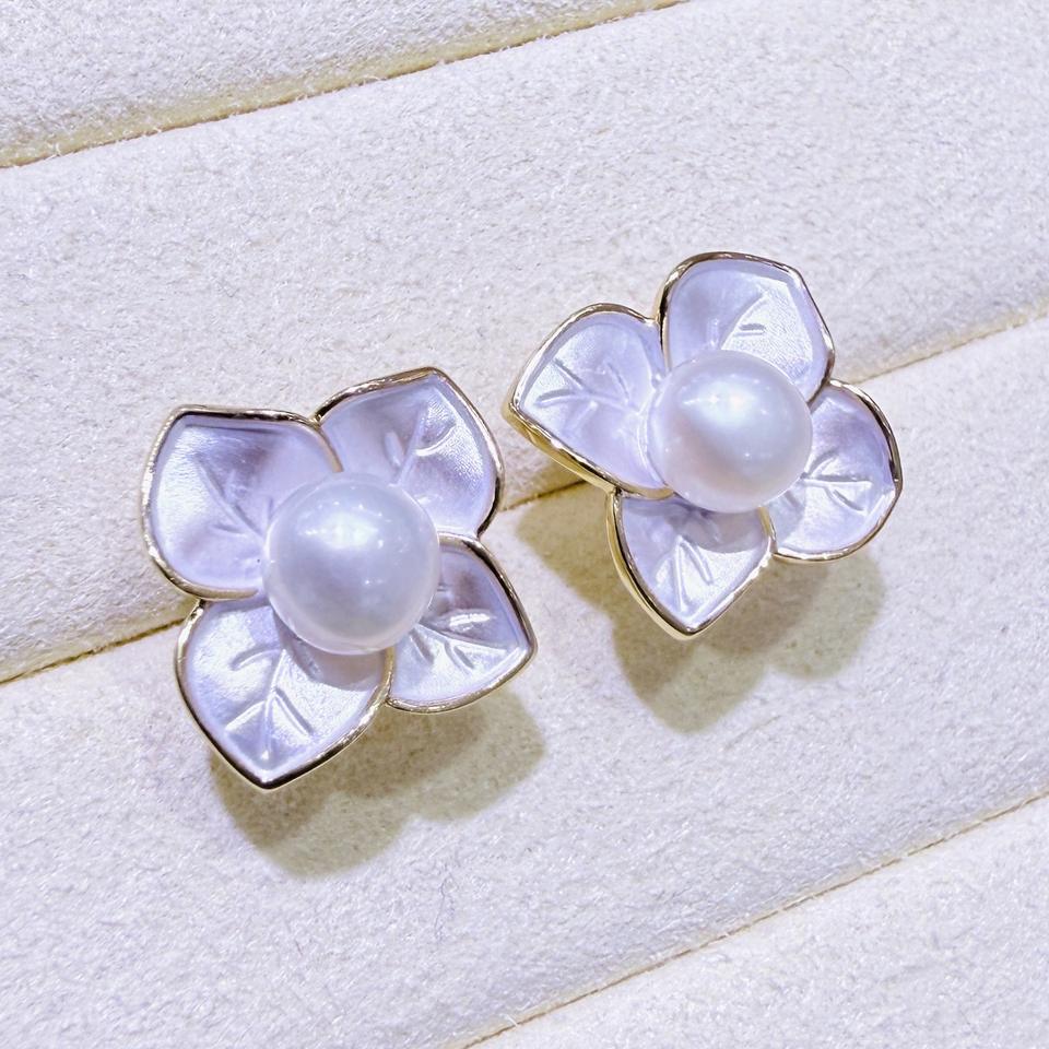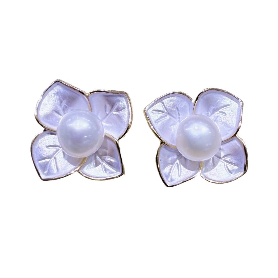 Zhuji High-End French Collection Freshwater Pearl White Drop Glazed Frosted Flower Stud Earrings for Women