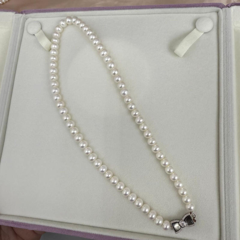Zhuji Luxury Silver Buckle Necklace 7-8mm Freshwater Pearls with Strong Light Versatile and Niche S925 Slightly Flawed