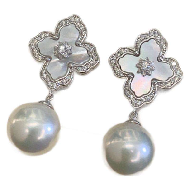 Zhuji Natural 10-11mm Freshwater White Pearl Earrings Retro Flawless Powder Light 925 Silver with Matching Gift Box