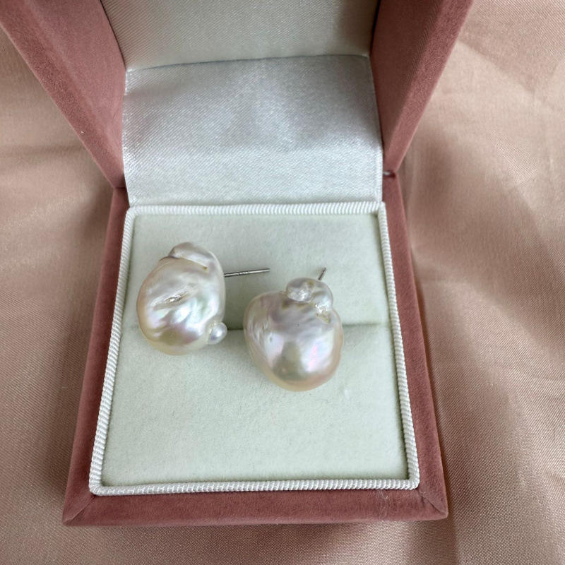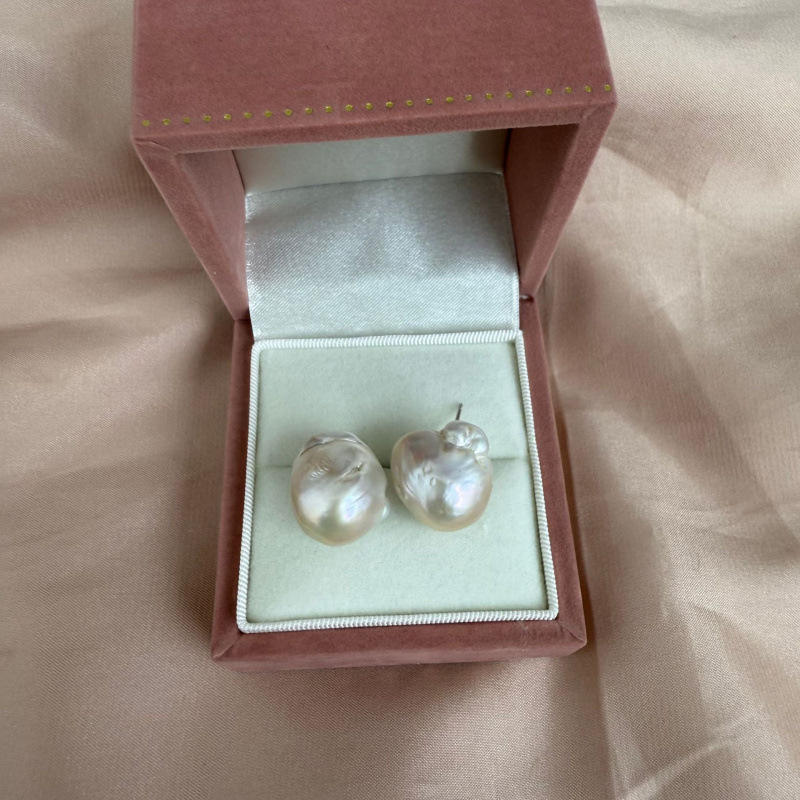 Zhuji Natural 14-18mm Freshwater Pearl Earrings with S925 Silver Baroque Strong Light Fashionable & Simple Style