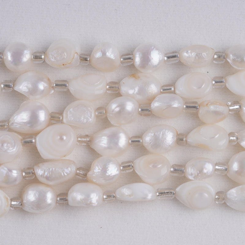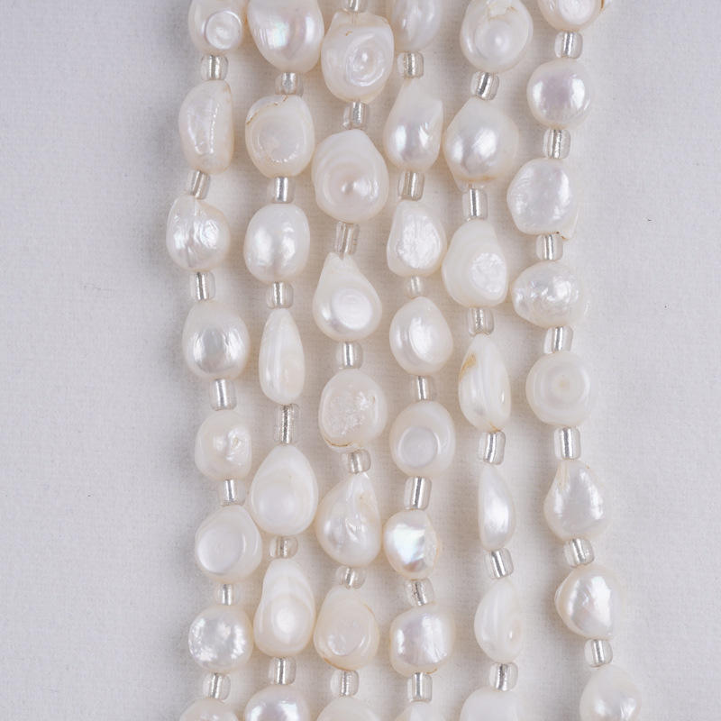 Zhuji Natural 18cm Freshwater Pearl String 10-11m White Adhesive Shell Straight Hole Baroque Bead for DIY Jewelry Bracelet