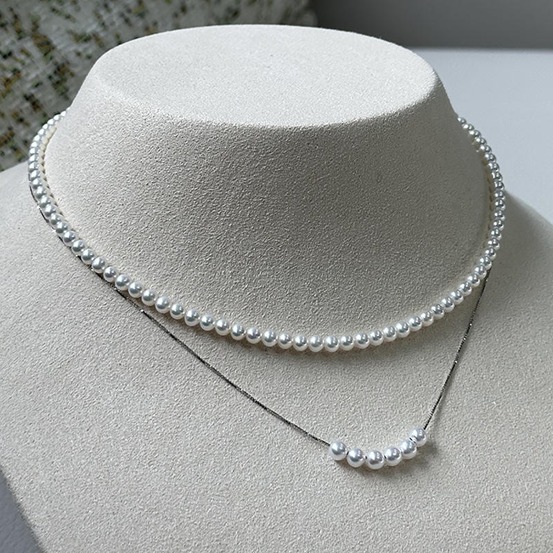 Zhuji Natural 4-5mm Freshwater Akoya Round Pearl Super Bright on Pure Silver Neck Chain Freshwater Pearl Necklaces Smile Chain