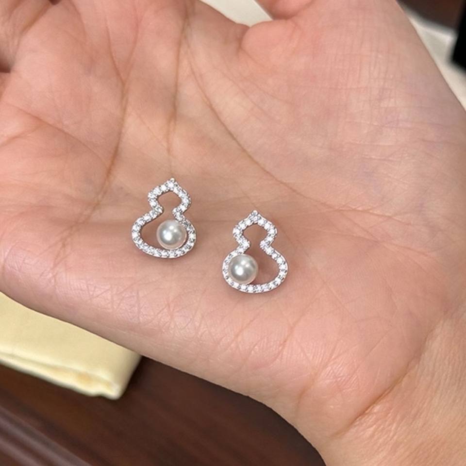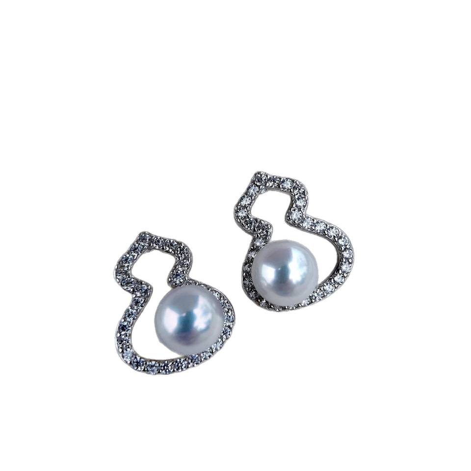 Zhuji Natural 5-6mm Round Freshwater Aurora Gourd Pearls Flawless Round Earrings Versatile and Atmospheric Fine Dangle Jewelry