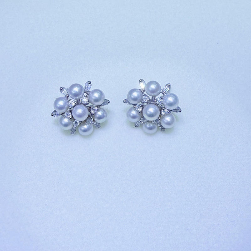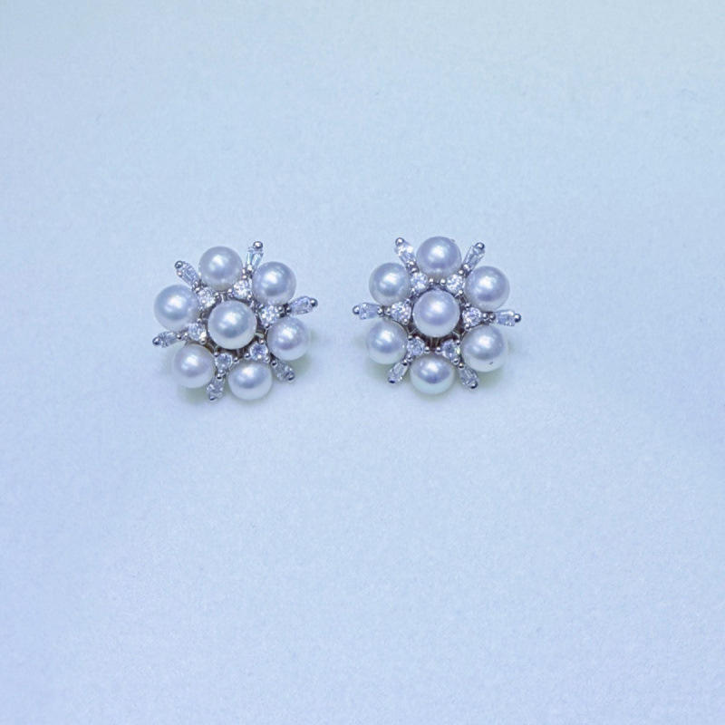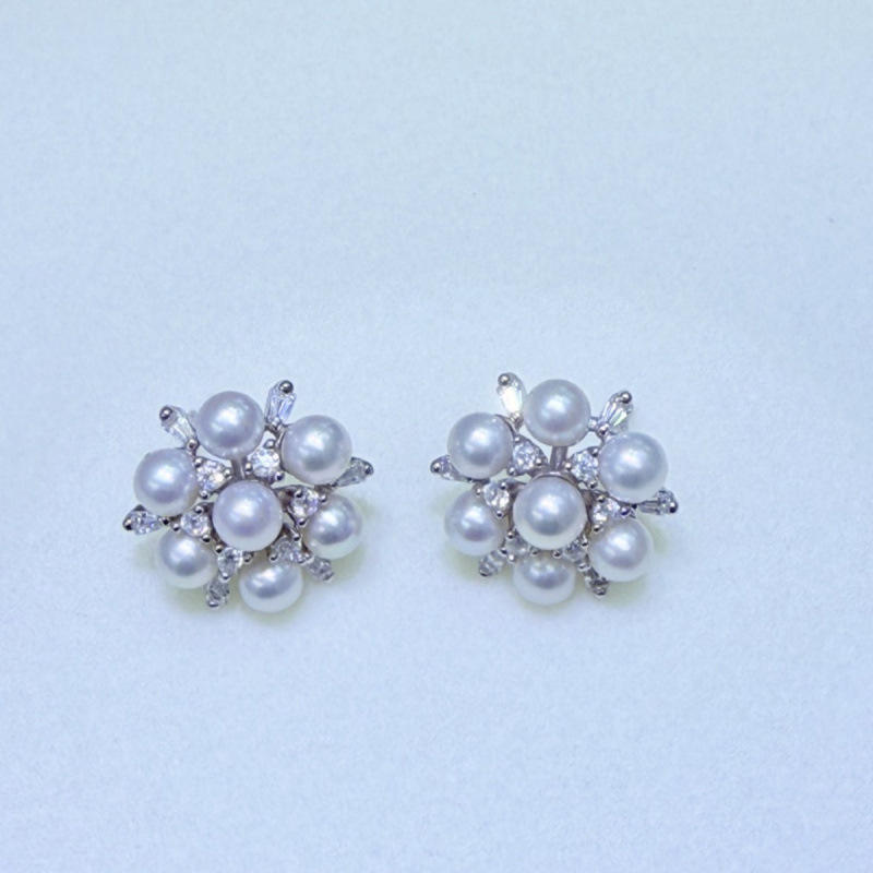 Zhuji Natural Freshwater 4-5mm Snowflake Stud Earrings High-End Aurora Flawless Sterling Silver for Women