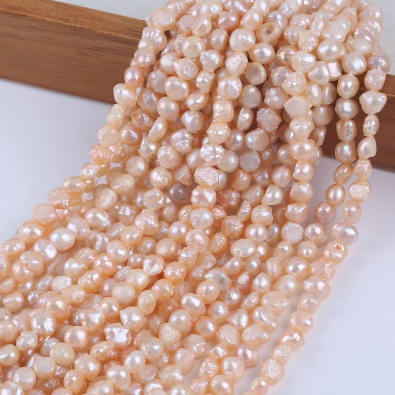 Zhuji Natural Freshwater Baroque Pearl String 18cm 6-7mm Two Sides with Side Holes Loose Pearls for DIY Jewelry