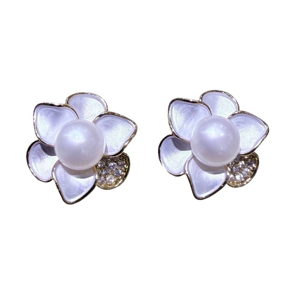 Zhuji Natural Freshwater Pearl Camellia Earrings Fashionable Light Luxury Matte Flower Earrings S925 Silver Needle White Pearl