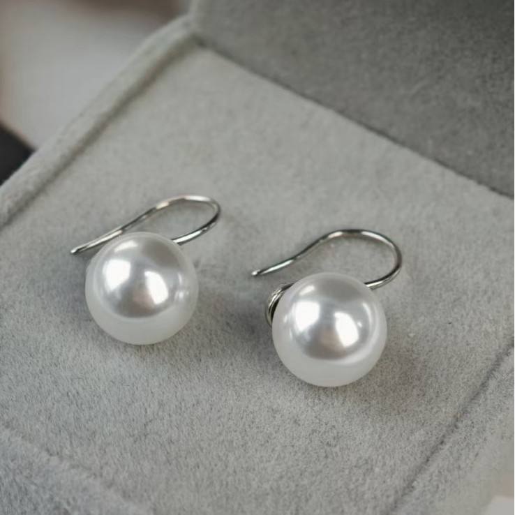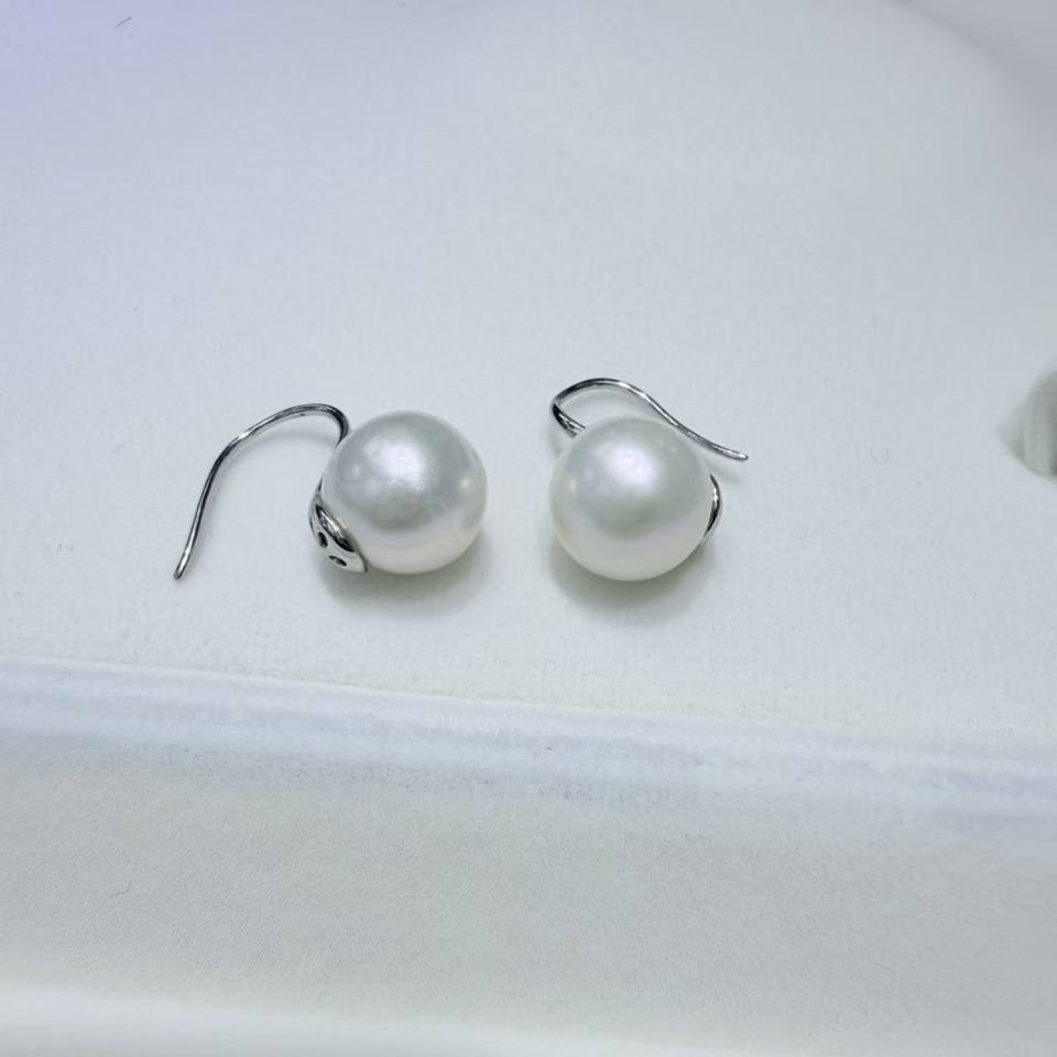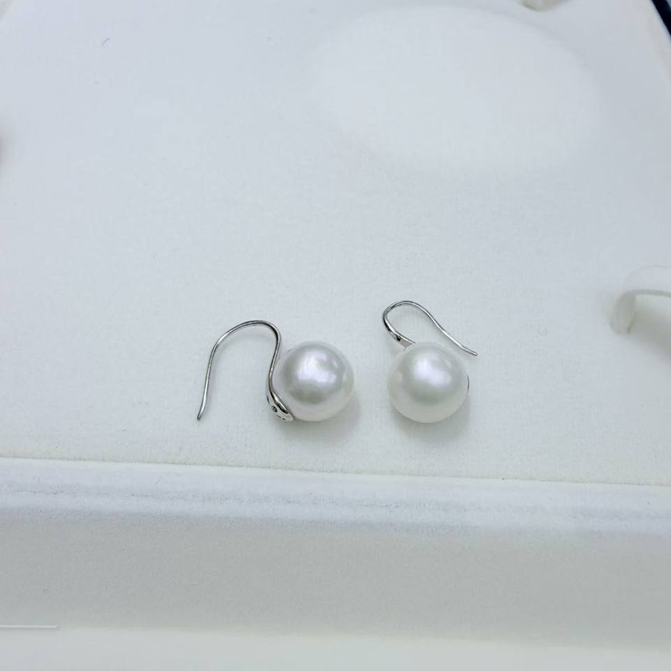 Zhuji Natural Freshwater Pearl Earrings 925 Pure Silver High Heels 12-13mm Edison White Bead Earhook Flawless Round Design