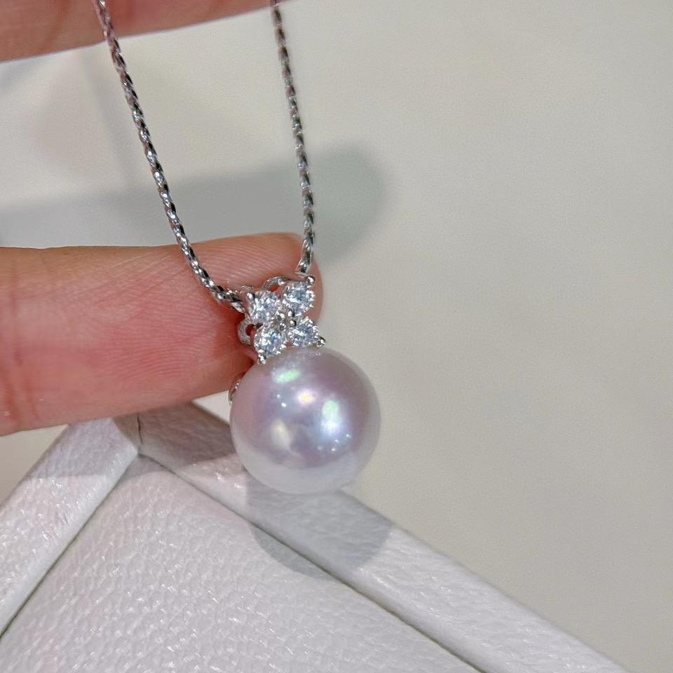 Zhuji Natural Freshwater Pearl Necklace 11-12mm Near Strong Light Edison Clover Pendant Clavicle Chain Fine Pendant Necklaces