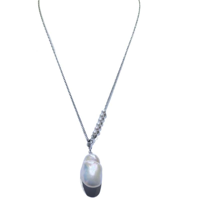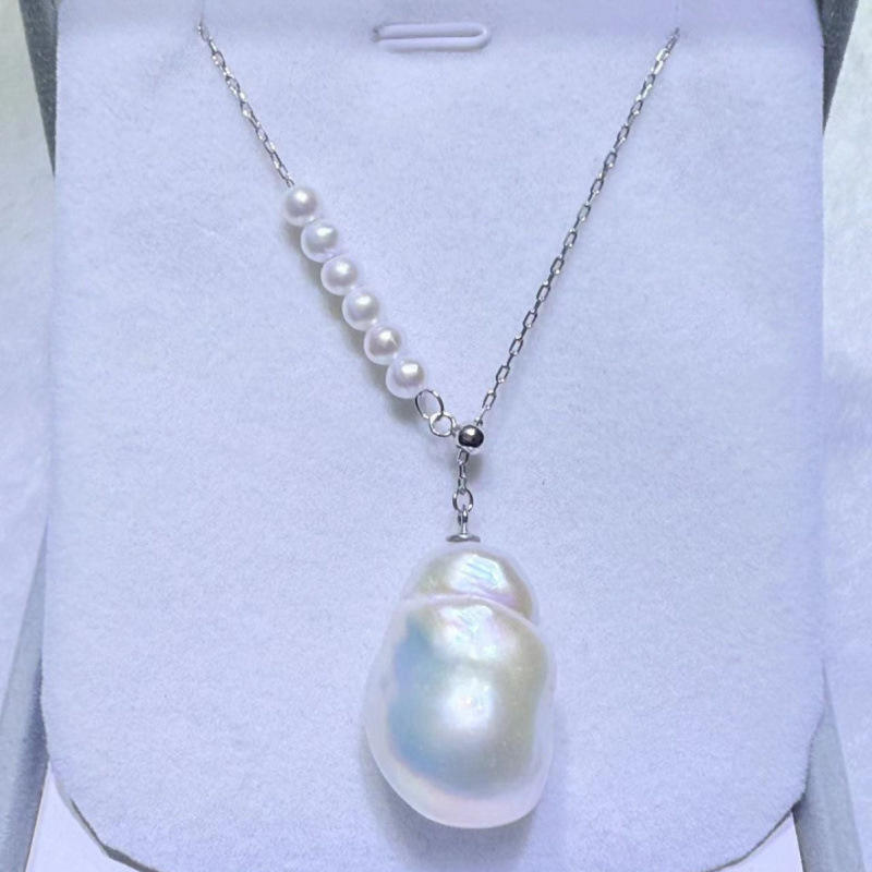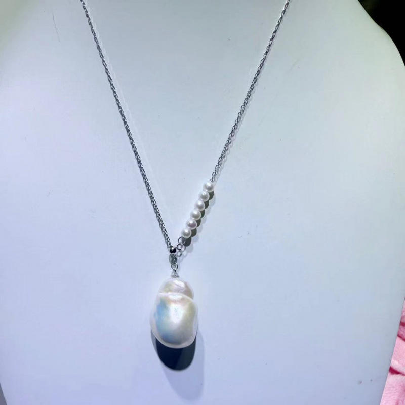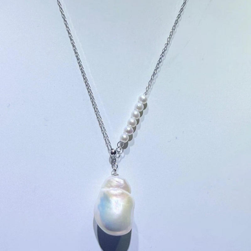 Zhuji Natural Freshwater Pearl Necklace Geometric Design Pure Silver Accessories Including Dabalok Pendant Unique Women's