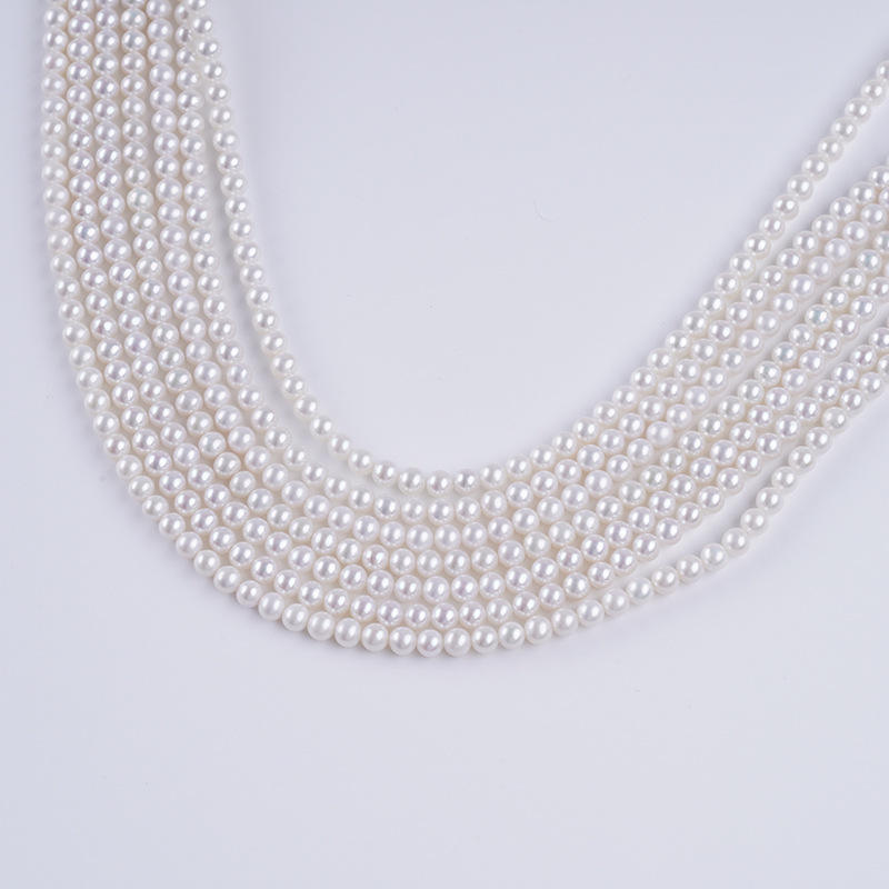 Zhuji Pearl 4-5mm White Natural Freshwater Keshi Pearls Round Bead String for DIY Semi-Finished Necklace Bracelet Material