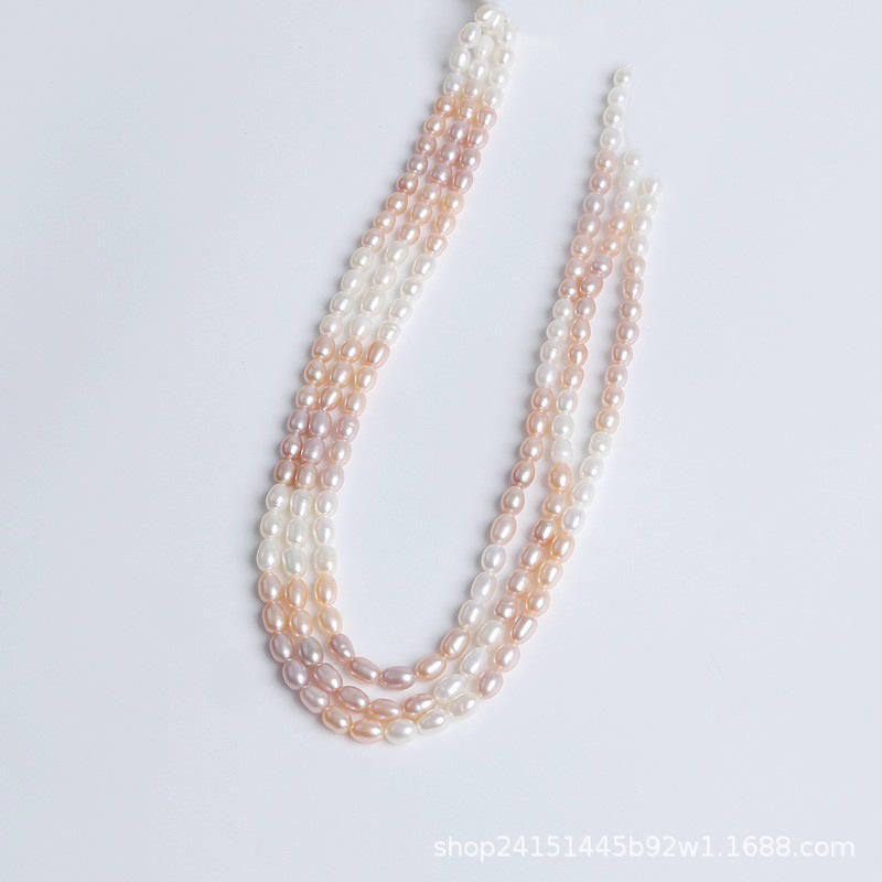 Zhuji Pearl Natural Freshwater 4.5-5mm White Powder Rice Shape Loose Interval Color DIY Necklace Bracelet