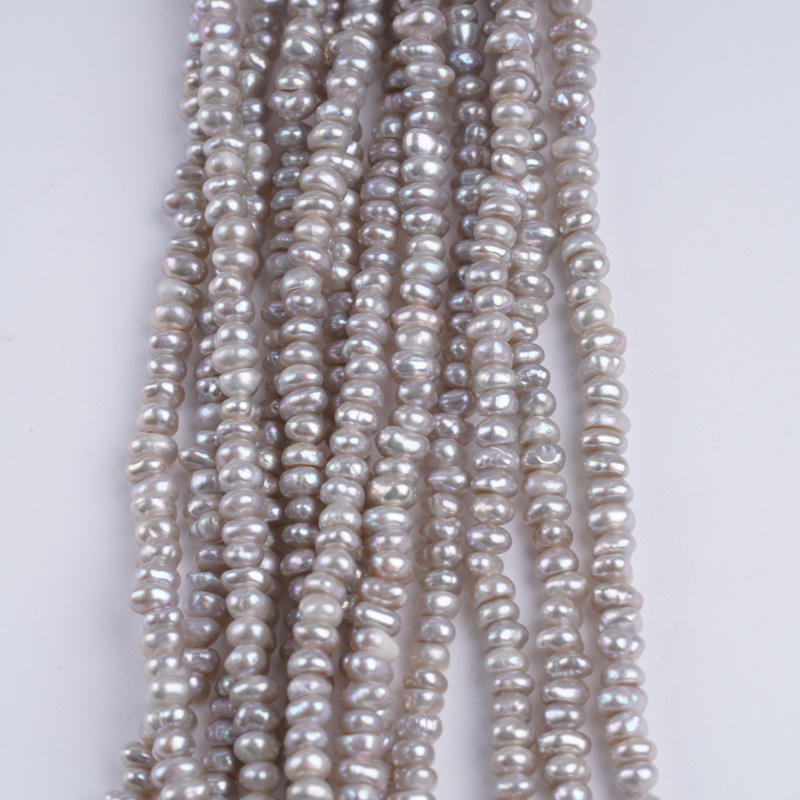 Zhuji Pearl Wholesale Natural Freshwater Gray Flat Pearl String 18cm 2.5-3mm for DIY Jewelry White Loose Pearls