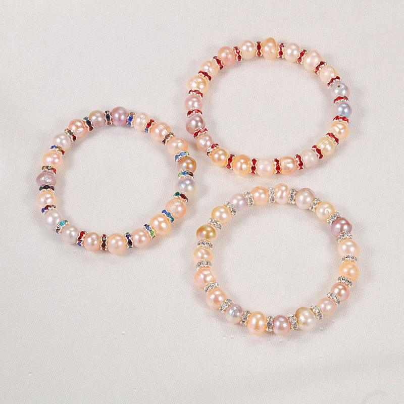 Zhuji Shanxia Lake Women's True Pearl Bracelet with Elastic Band Drill Ring Colorful Wholesale Personal Gift Set Danshui Style