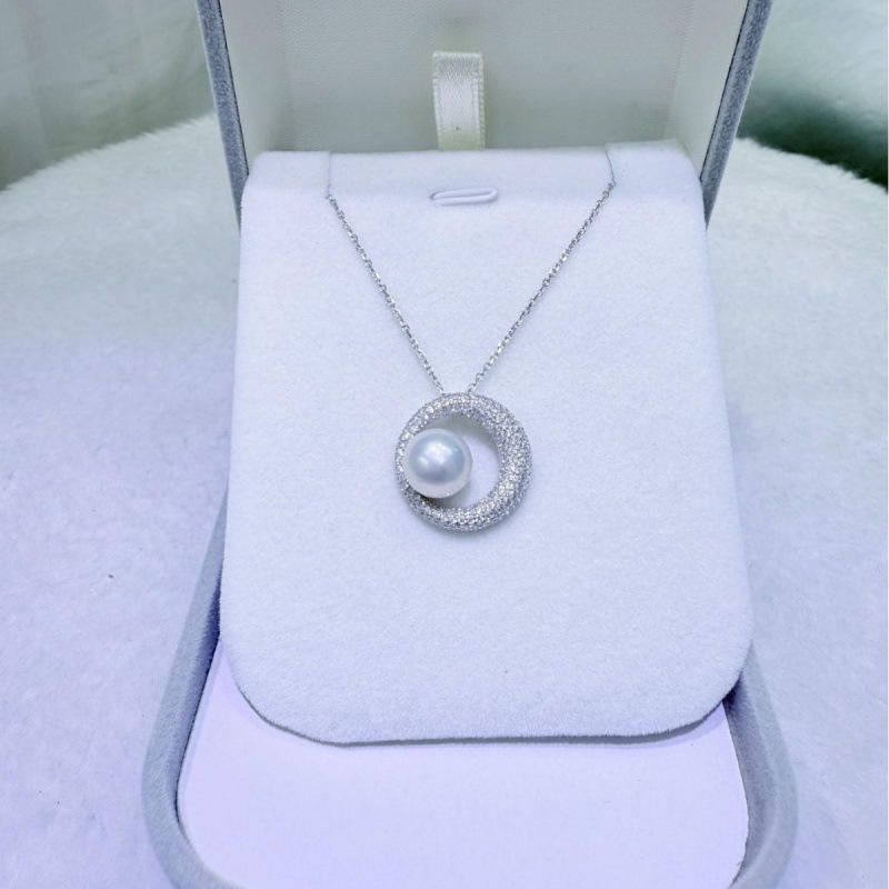 Zhuji Versatile Fashion 9-10mm Freshwater Pearl Necklace with Pure Silver Pendant Almost Flawless Aurora