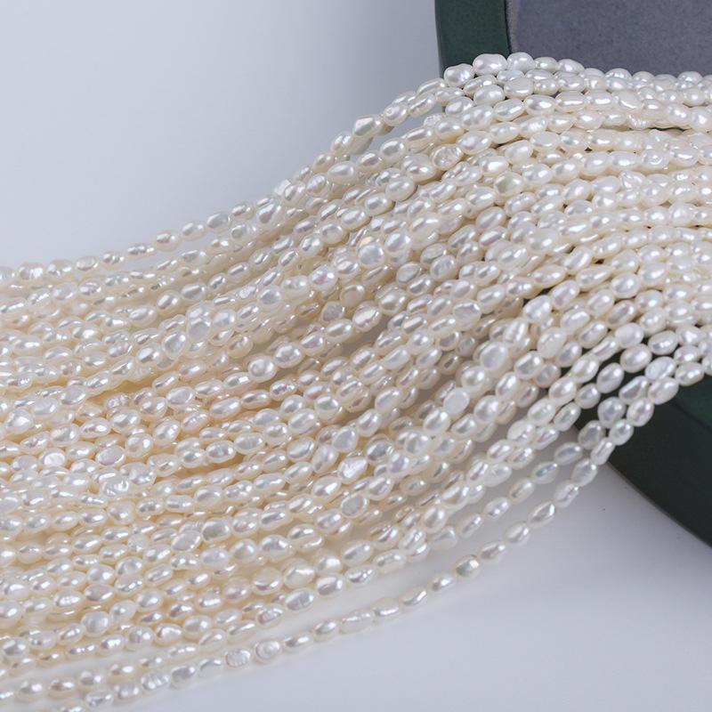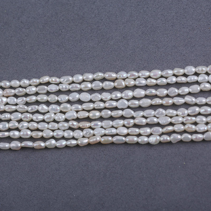 Zhuji Wholesale 3-4mm Natural Freshwater Pearl Straight Hole Two Sided Light DIY Pendant Necklace Bracelet Accessories Loose