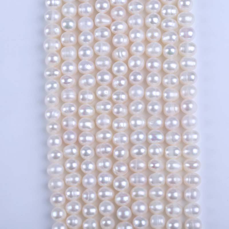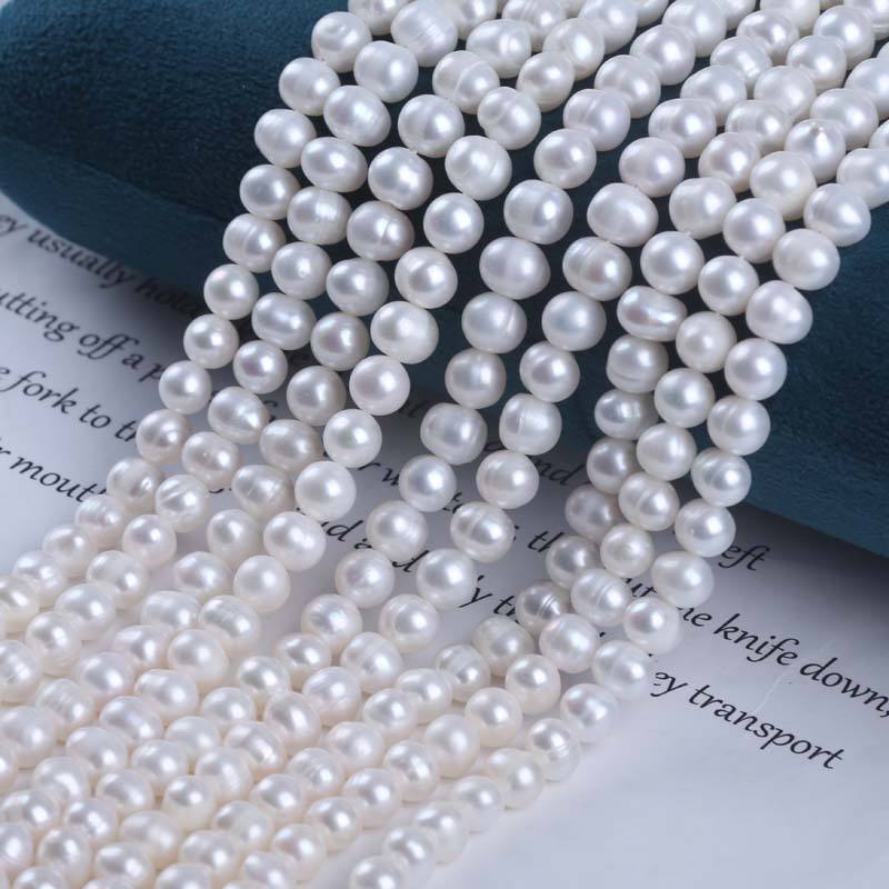 Zhuji Wholesale 7-8mm White Near Round Freshwater Pearl Punch Loose Pink Beads Semi Finished DIY Handmade Material